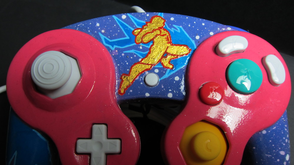 [metaslider id=244] I painted this controller to look like cheese with the Smash Brothers logo in cheese hole style in the ...
